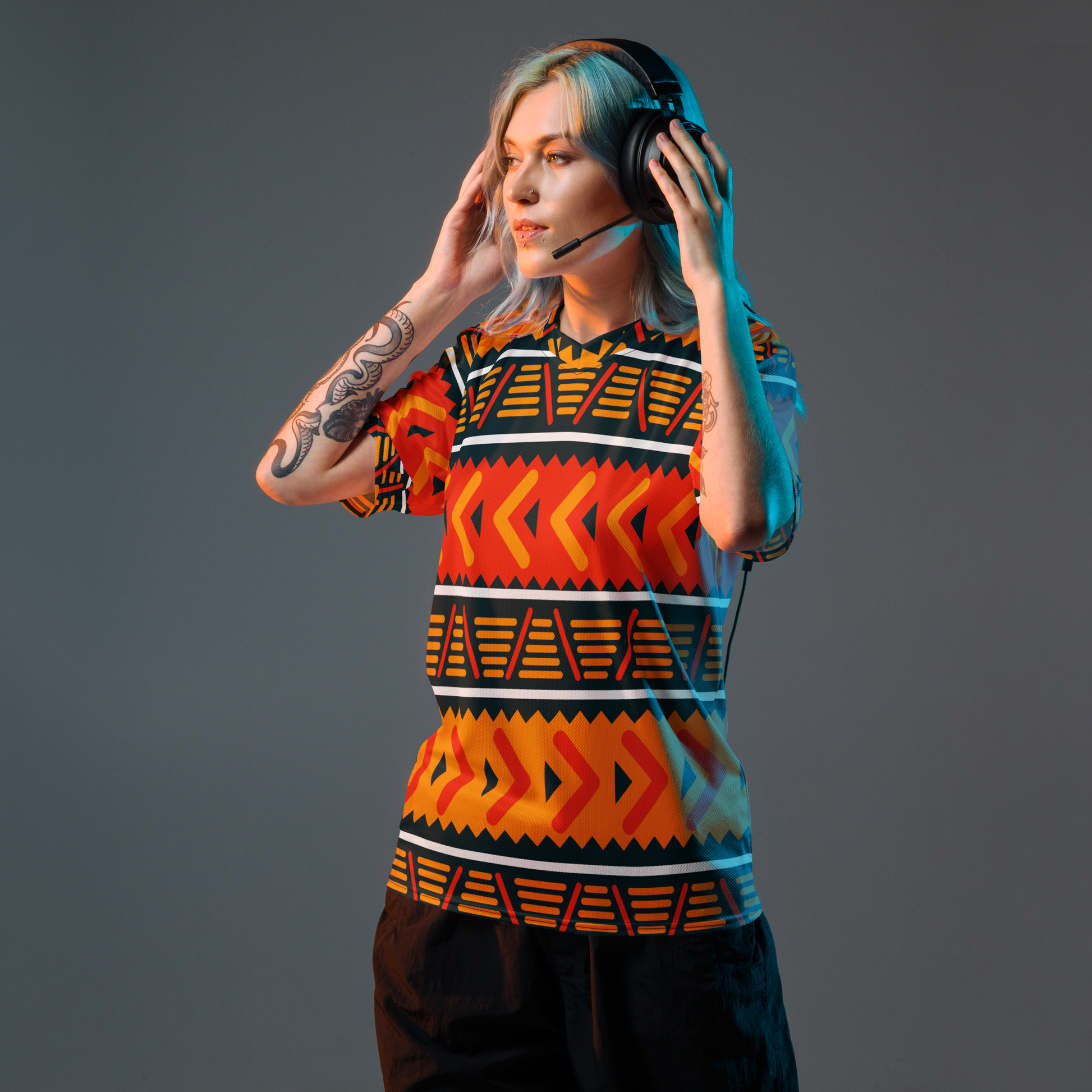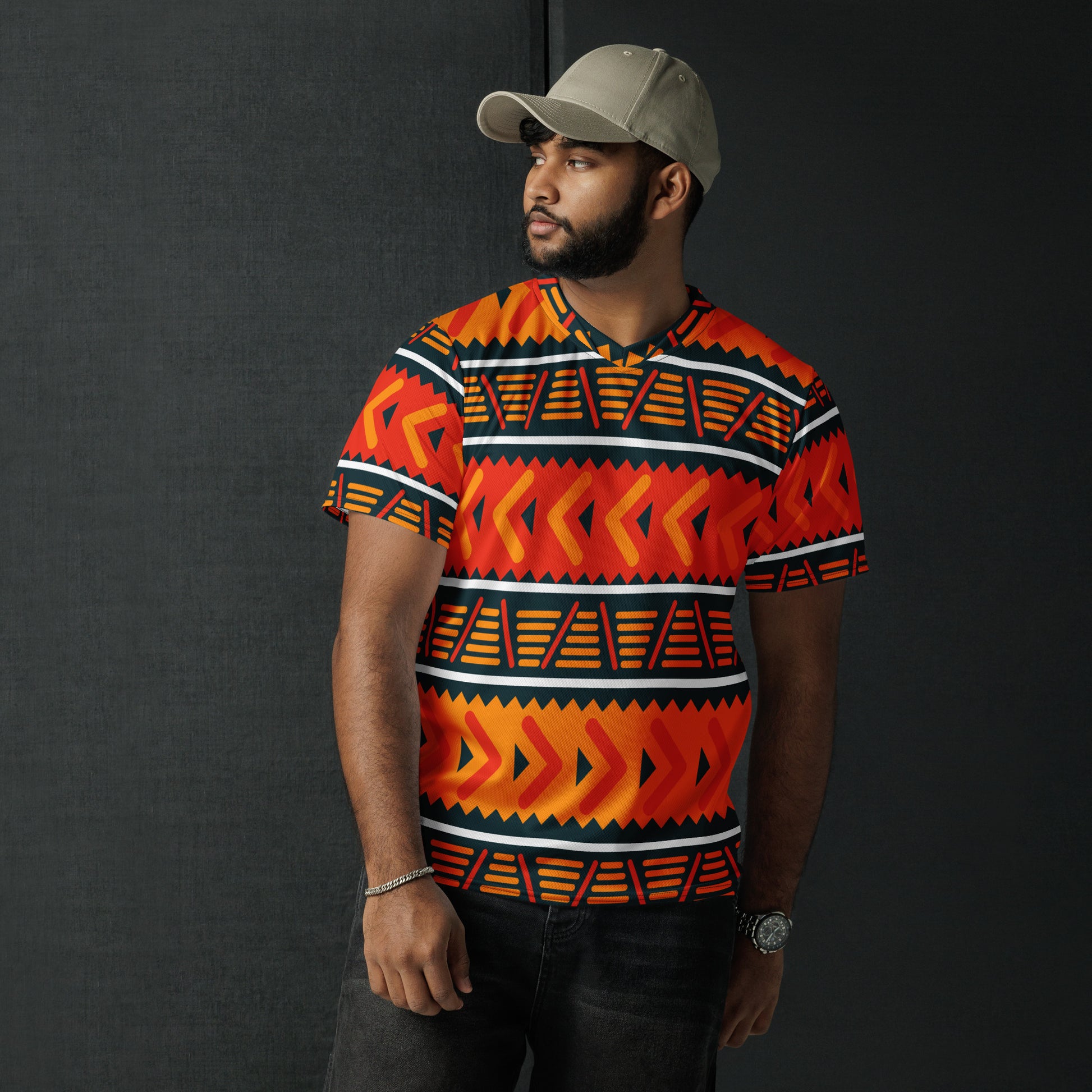 Looking for the perfect sports jersey? We have you covered—made of 100% recycled polyester fabric, this shirt is breathable, moisture-wicking, and has a double-layered v-neck collar that creates a premium look.
